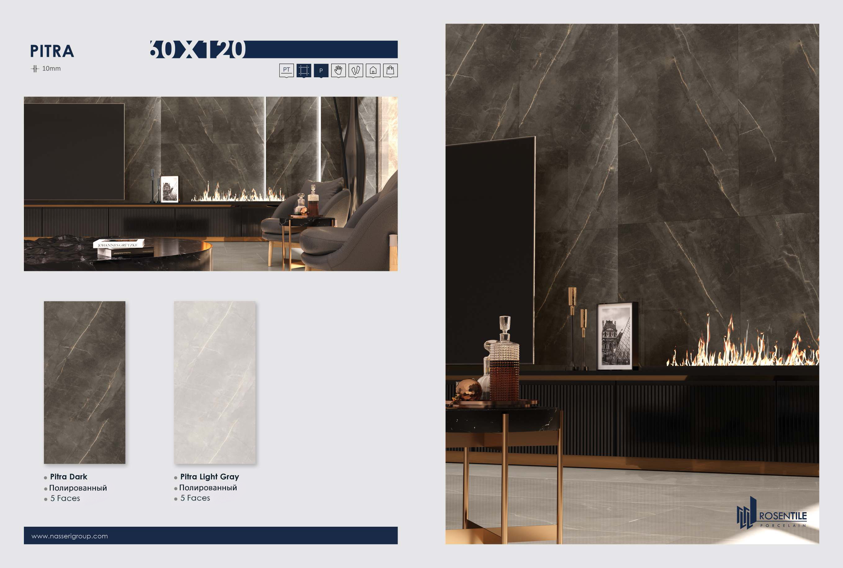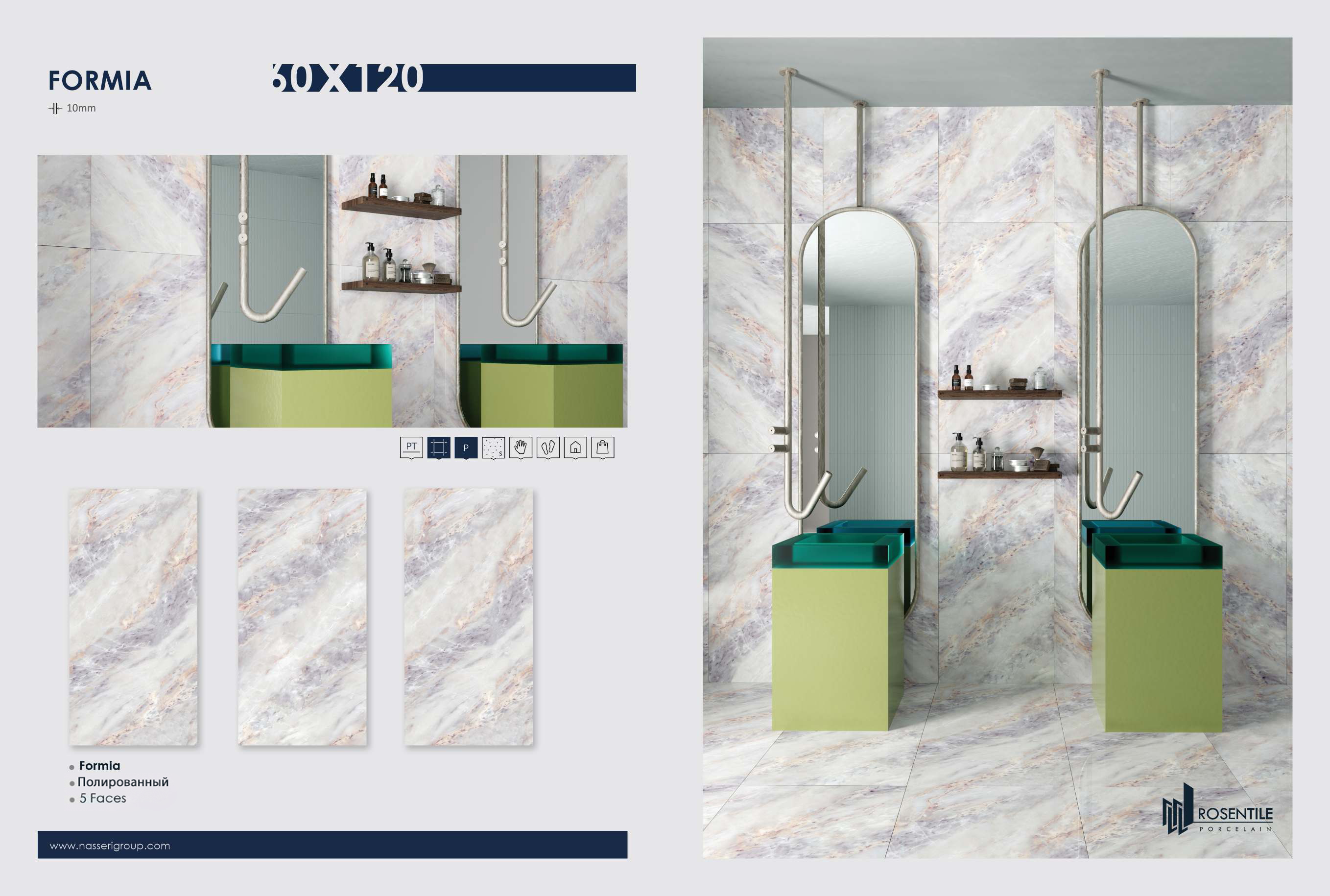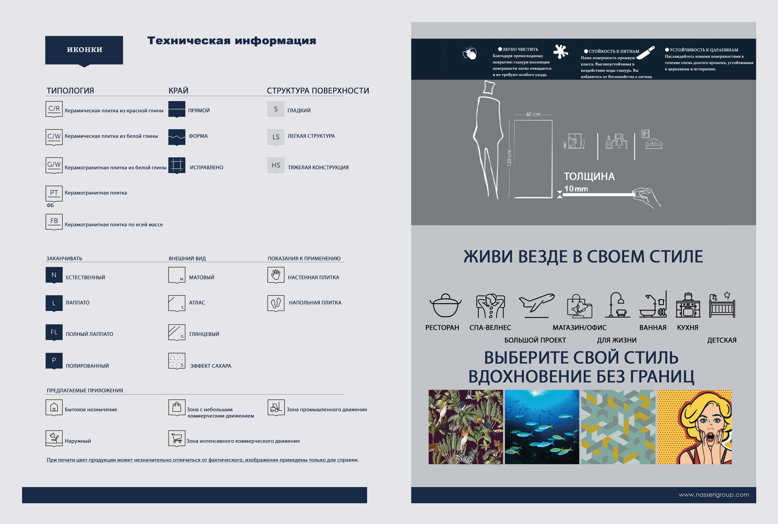 Разнообразие форматов позволяет реализовать любые дизайнерские решения. В ассортименте представлены как классические размеры, так и крупноформатные плиты, что дает возможность создавать уникальные композиции и решать самые сложные задачи в интерьере.